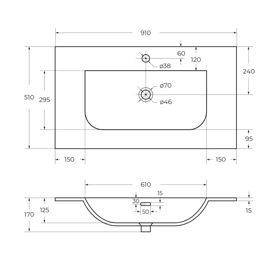 Керамическая раковина CZR-8099-90/50, 910x510x170