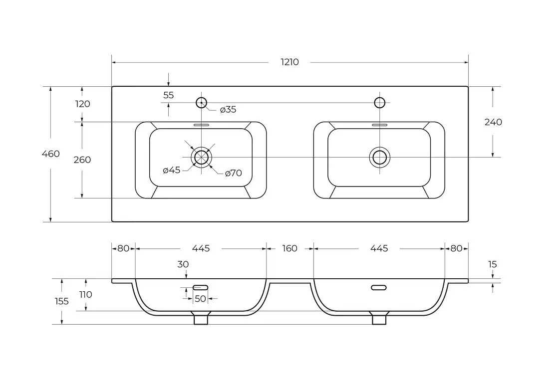 Керамическая раковина с двумя чашами CZR-8073-120-2, 1210x460x155