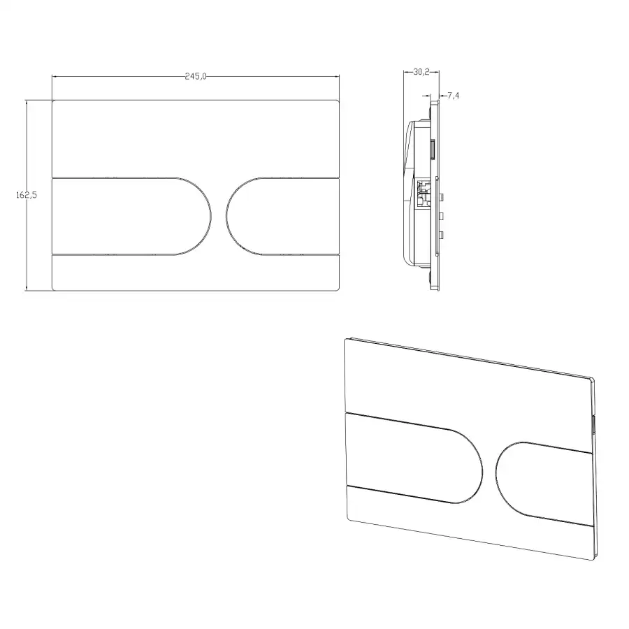 Кнопка смыва AZARIO NEW-TS механическая, двойной смыв, овальные кнопки, нержавеющая сталь 304, серый матовый (AZ-SS-001-BR)