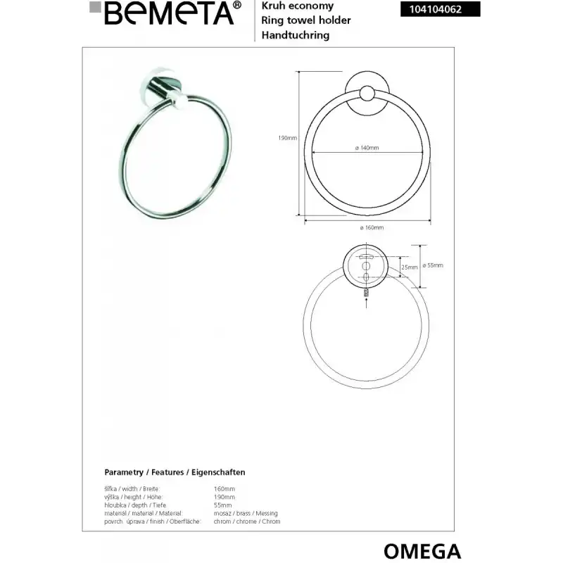 Кольцо для полотенец 16 см BEMETA OMEGA хром 104104062