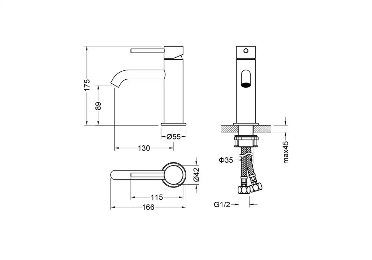 Комплект смесителей для ванны Aquatek Бетта AQ1130MB, 3 в 1 однорычажный, Черный матовый