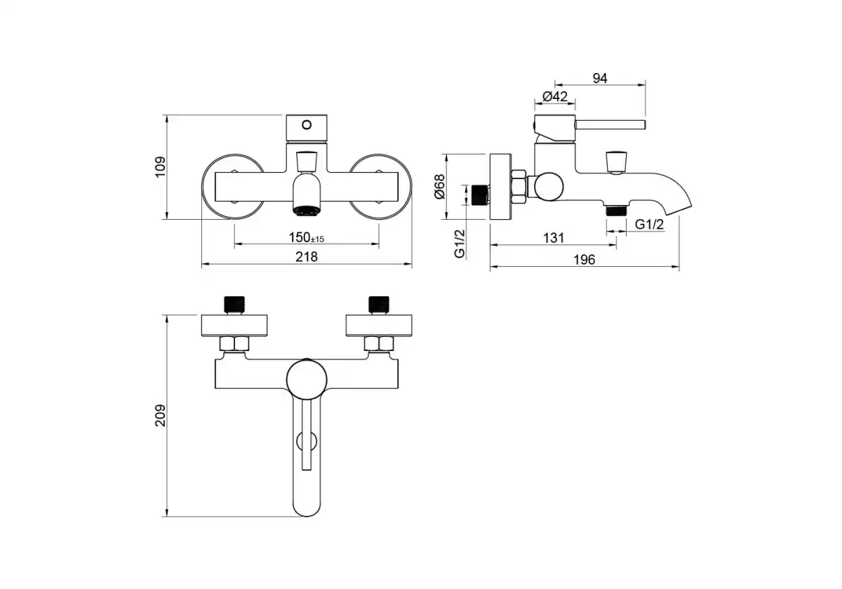 Комплект смесителей для ванны Aquatek Европа AQ1331MB, 3 в 1 однорычажный, Черный матовый