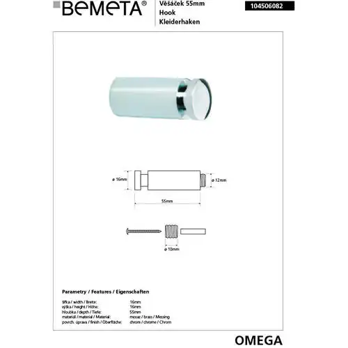 Крючок 5,5 см BEMETA OMEGA хром 104506082