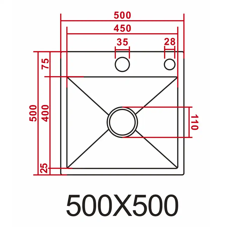 Кухонная мойка AZARIO NICOLE 500х500х220 нержавеющая сталь, серая соты: AZG5050H