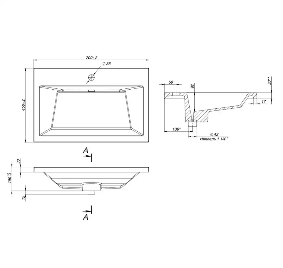 Раковина "БЛИСС-70 см" белая глянец, белая