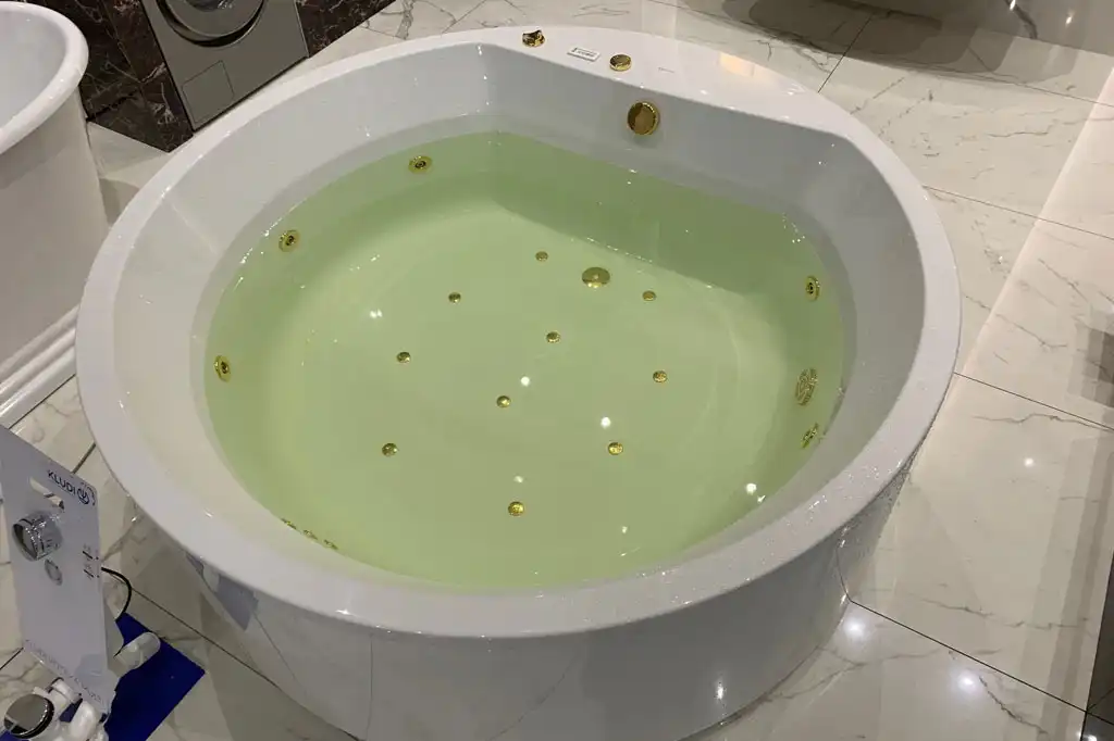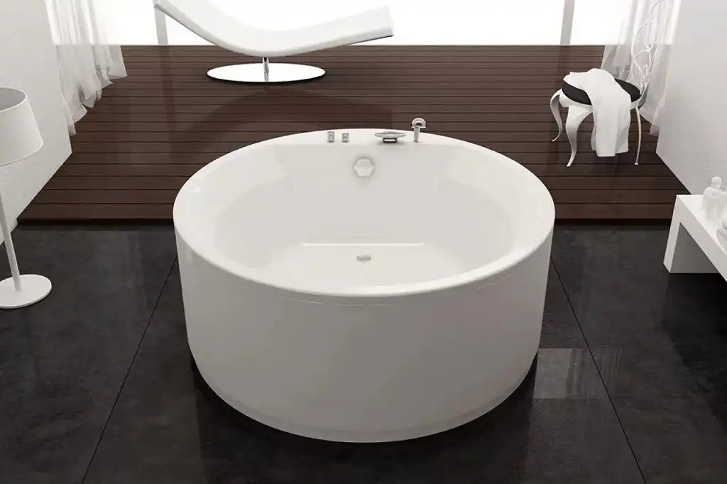 Необычная круглая ванна Kolpa San VIVO 160 станет украшением ванной комнаты. Модель представлена производителем в семи модификациях и по желанию клиента может быть оборудована различными видами массажных систем, подсветкой, хромотерапией. Смеситель легко подобрать под стиль помещения, а удобная полочка на бортике позволит с комфортом расположить средства ухода и гигиены.