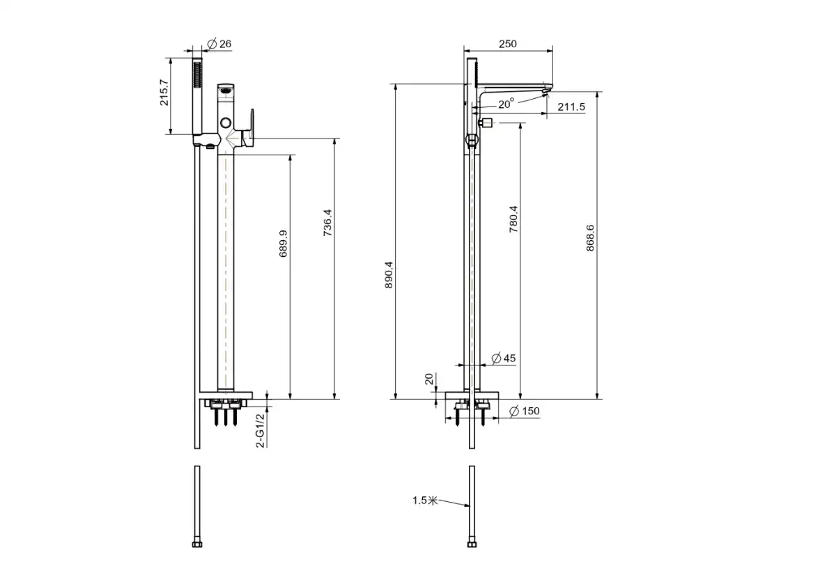 Тип изделияСмеситель напольный