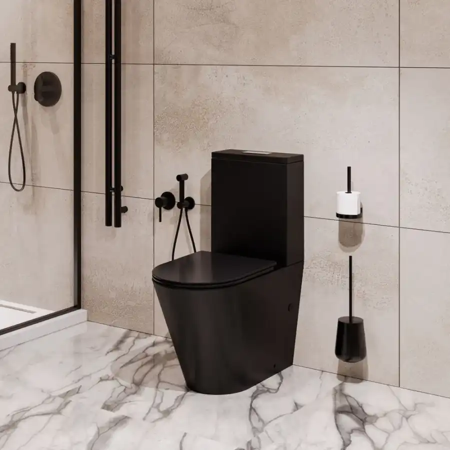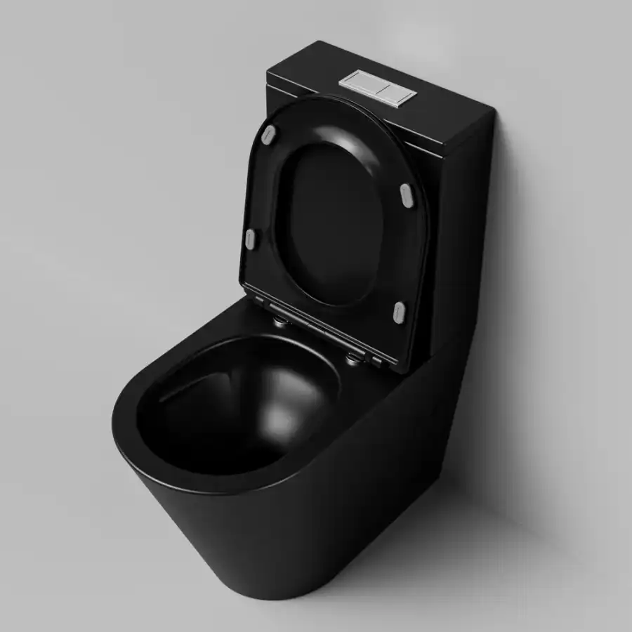 Унитаз напольный Grossman GR-4458BMSQ (640х360х835) безободковый,черный матовый с тонкой крышкой,микролифт,смыв торнадо.