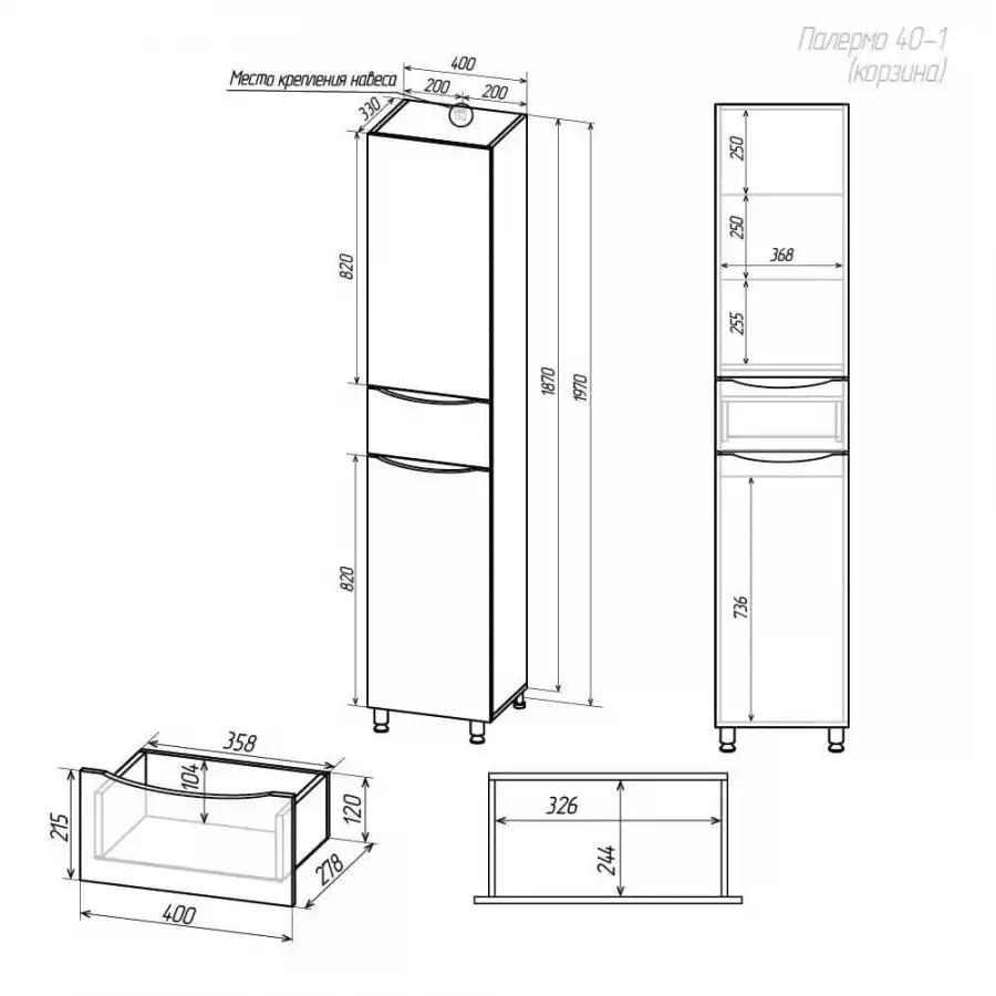 Пенал AURA ПАЛЕРМО 40-1 напольный корзина левый