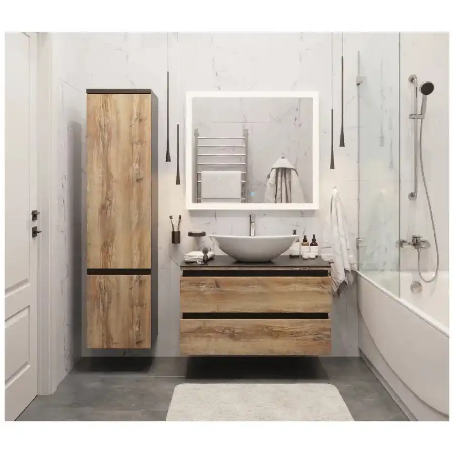 Этот пенал имеют точно такие же фасады, как на тумбах данной коллекции и отлично впишутся в Ваш дизайн ванной комнаты.