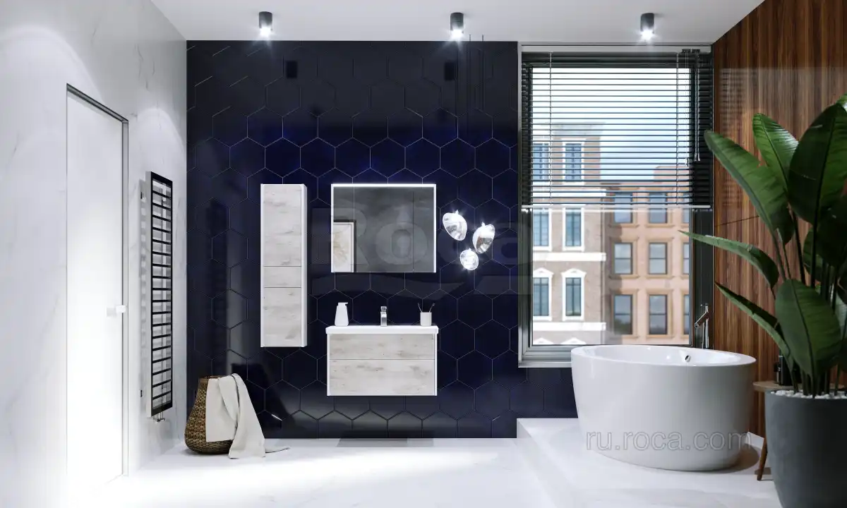 Пенал Roca Ronda ZRU9303005 подвесной, левый, цвет, Белый матовый, бетон в современном стиле от испанского бренда Roca, выполненная из высококачественной МДФ, укомплектованная ящиком полного выдвижения с системой push-to-open, регулируемыми по высоте стеклянными полочками и петлями с плавным доводом.