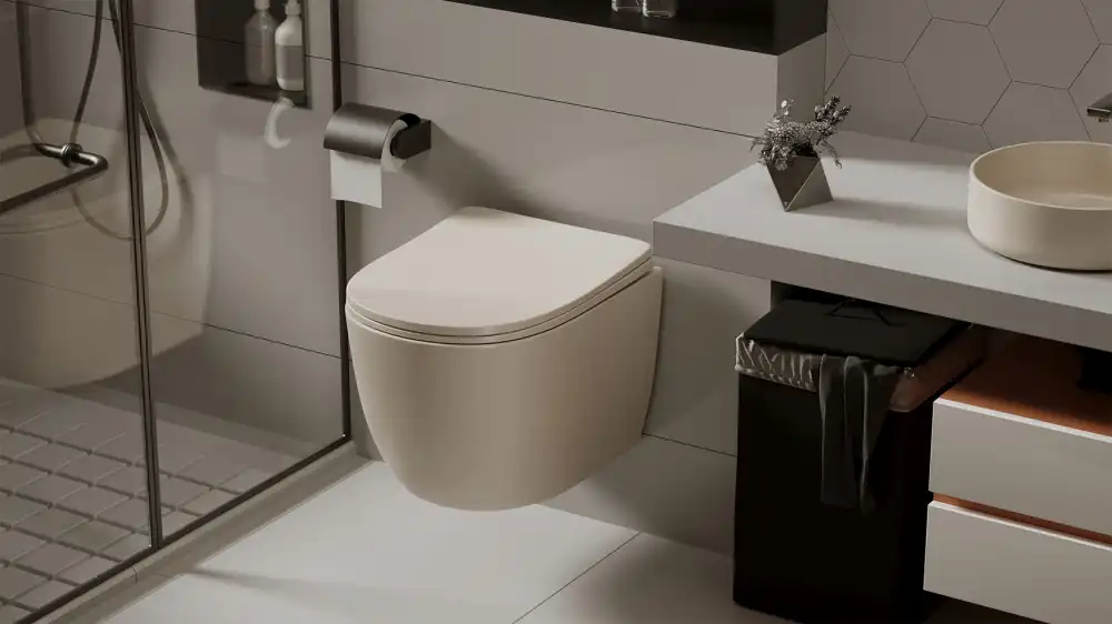 Подвесной унитаз ABBER Bequem AC1101MBE светло-бежевый матовый, безободковый, с сиденьем микролифт