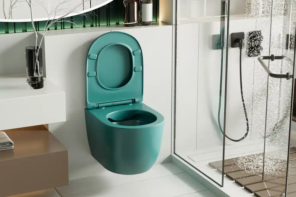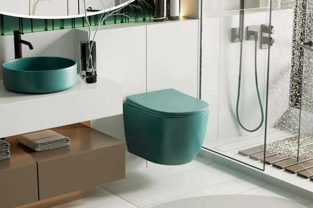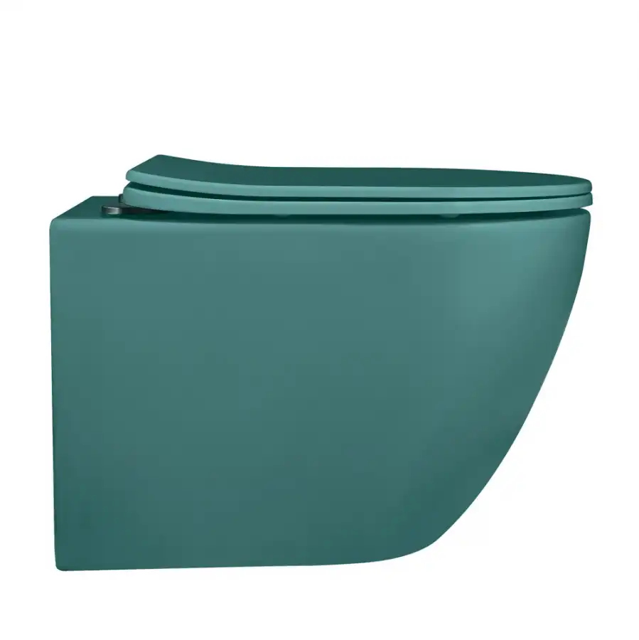 Унитаз ABBER Bequem AC1101MBG подвесной темно-зеленый матовый, безободковый, с сиденьем микролифтом.