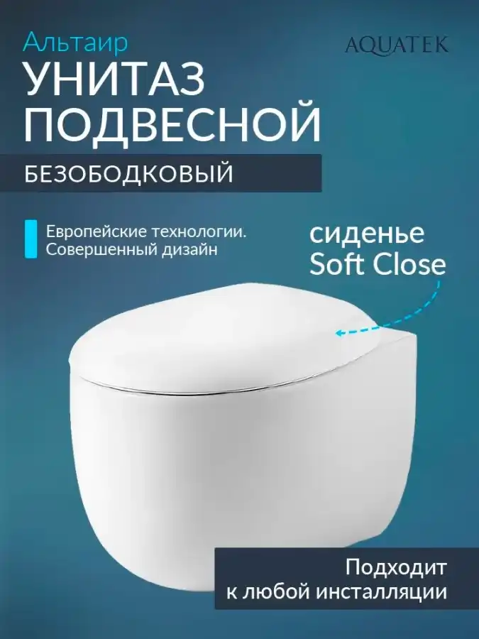 Подвесной унитаз Aquatek Альтаир AQ1980-00 безободковый, с сиденьем микролифт, Белый изготовлен из 100% санитарного фарфора, который сохраняет безупречную белизну на протяжении всего срока службы. Сиденье легко снимается для уборки одним нажатием кнопки. Механизм Soft Close обеспечивает плавное закрытие крышки унитаза. Безободковая конструкция унитаза облегчает уборку.