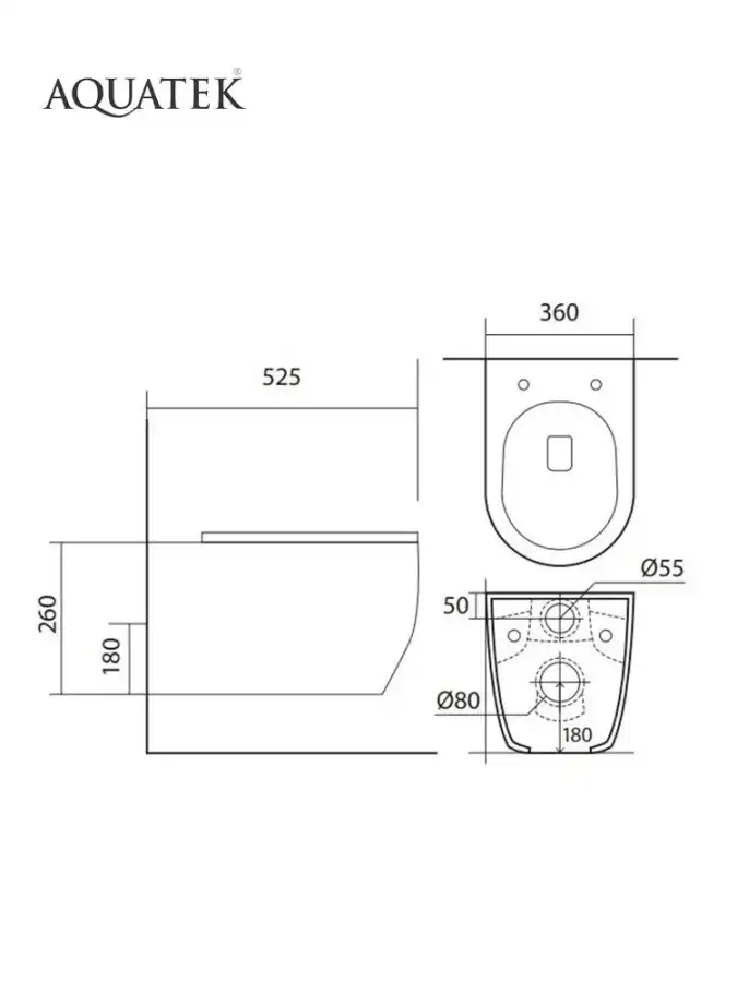 Подвесной безободковый унитаз Aquatek сочетает в себе современный дизайн, высокую функциональность и отличные эксплуатационные характеристики, что делает его идеальным выбором для любого санузла.