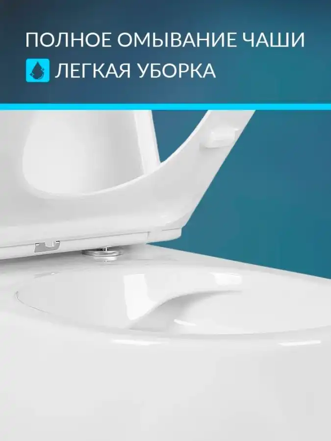 • Безободковая конструкция: Отсутствие ободка предотвращает накопление грязи и бактерий, что значительно упрощает уход за унитазом и повышает уровень гигиеничности. Удобная форма обеспечивает эффективный слив и исключает разбрызгивание.