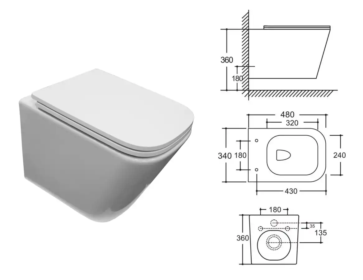 Подвесной унитаз Azario Armonia AZ-2403 безободковый, смыв Торнадо, в комплекте с сидением микролифт, Белый глянцевый