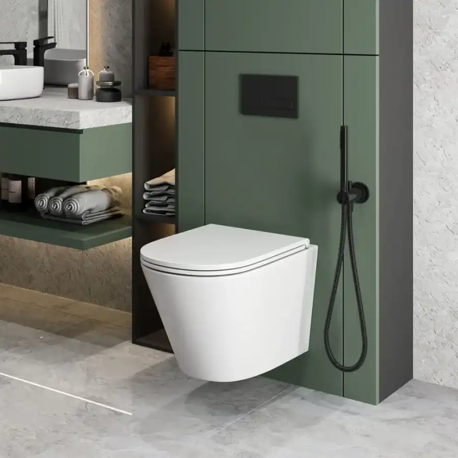 Унитаз подвесной Grossman GR-4403SQ (540х368х350) безободковый,белый с тонкой крышкой,микролифт,смыв торнадо.