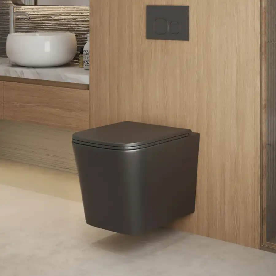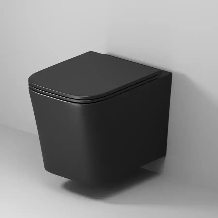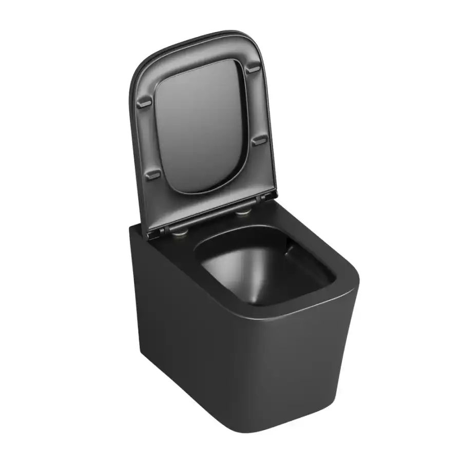 Унитаз подвесной Grossman GR-4441BMSQ (530х360х365) безободковый,черный матовый с тонкой крышкой,микролифт,смыв торнадо.