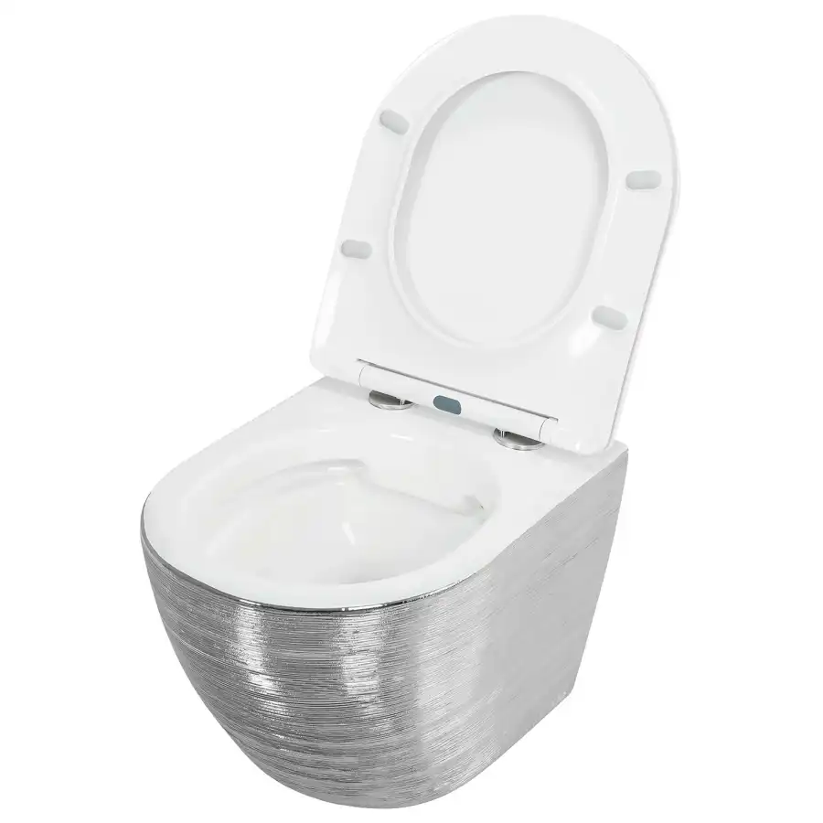 Унитаз подвесной Grossman GR-4455SWS (480х365х370) безободковый,серебро,внутри белый с тонкой крышкой,микролифт.