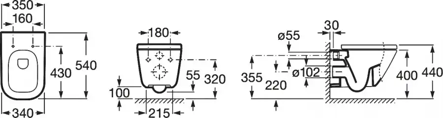 ROCA | THE GAP SQUARE чаша унитаза подвесная Rimless 350x540x350 мм, с горизонтальным выпуском, белый