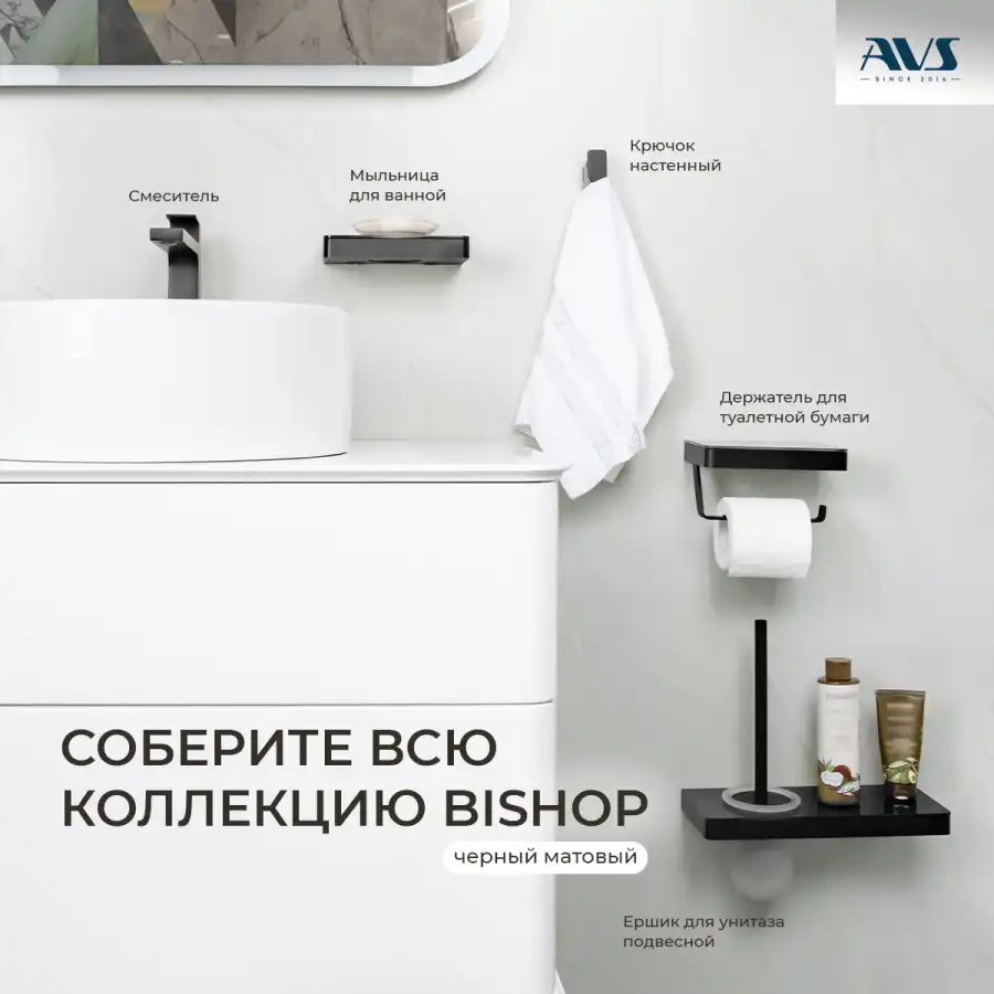 Полка AVS Bishop, 30 см, черный матовый, 805-01-100-MB.