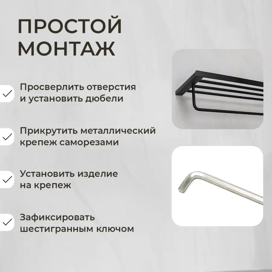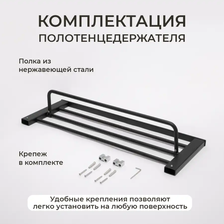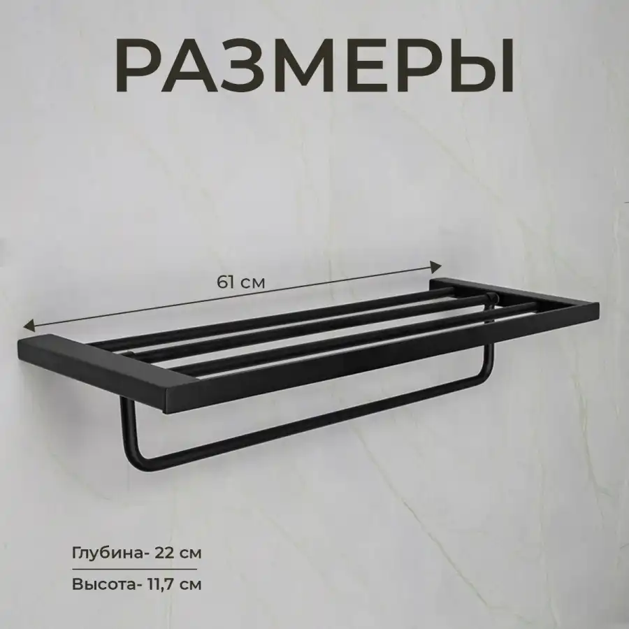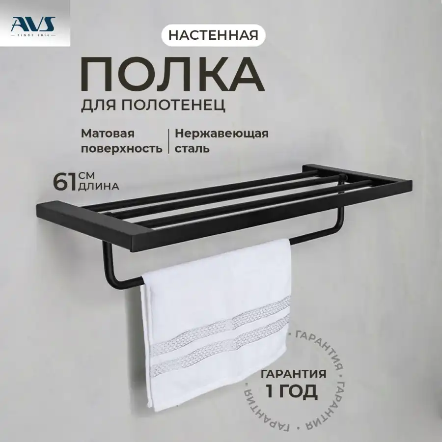 Полка для полотенец AVS Swart, 60 см, черный матовый, с полотенцедержателем