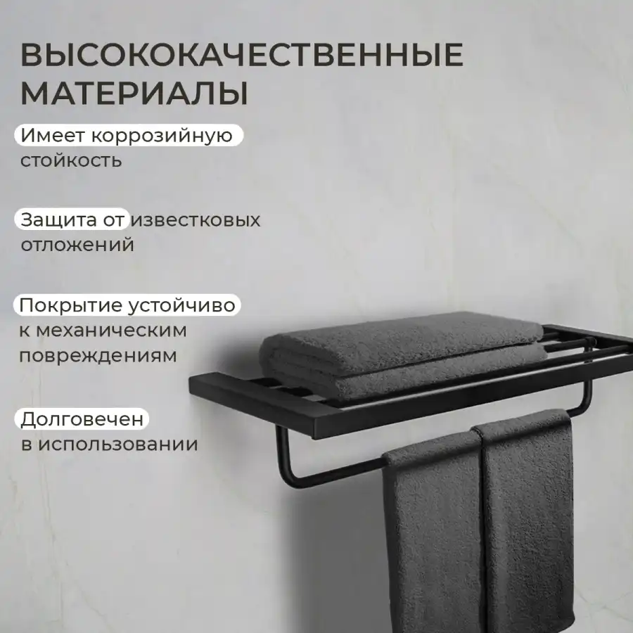 Полка для полотенец AVS Swart, 60 см, черный матовый, с полотенцедержателем, 805-09-105-MB.