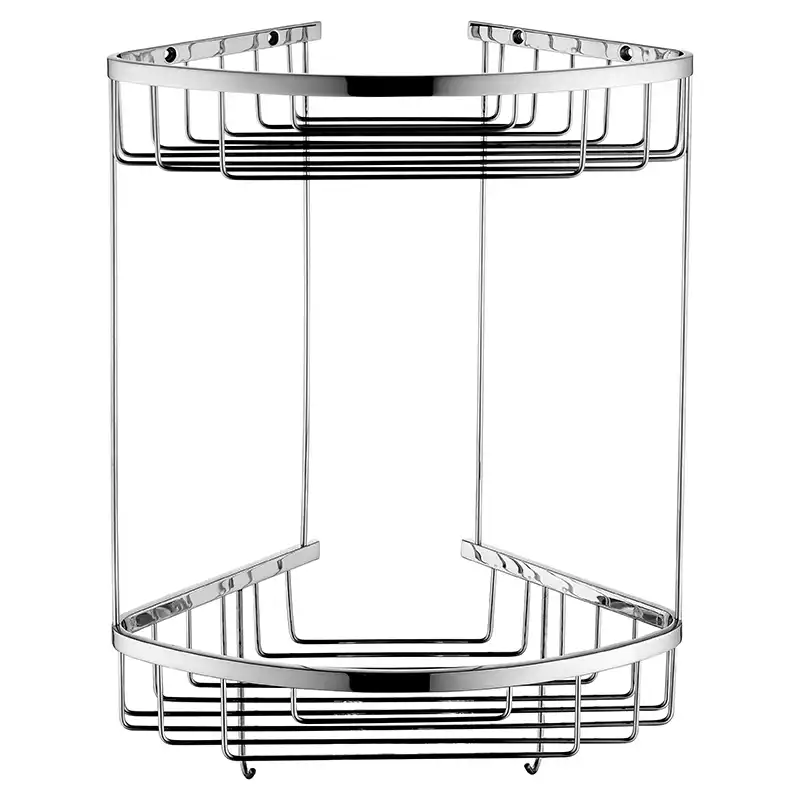 Полка угловая AVS Cesta, 20х20 см, хром, двухъярусная, с крючками, 805-07-146-Cr.