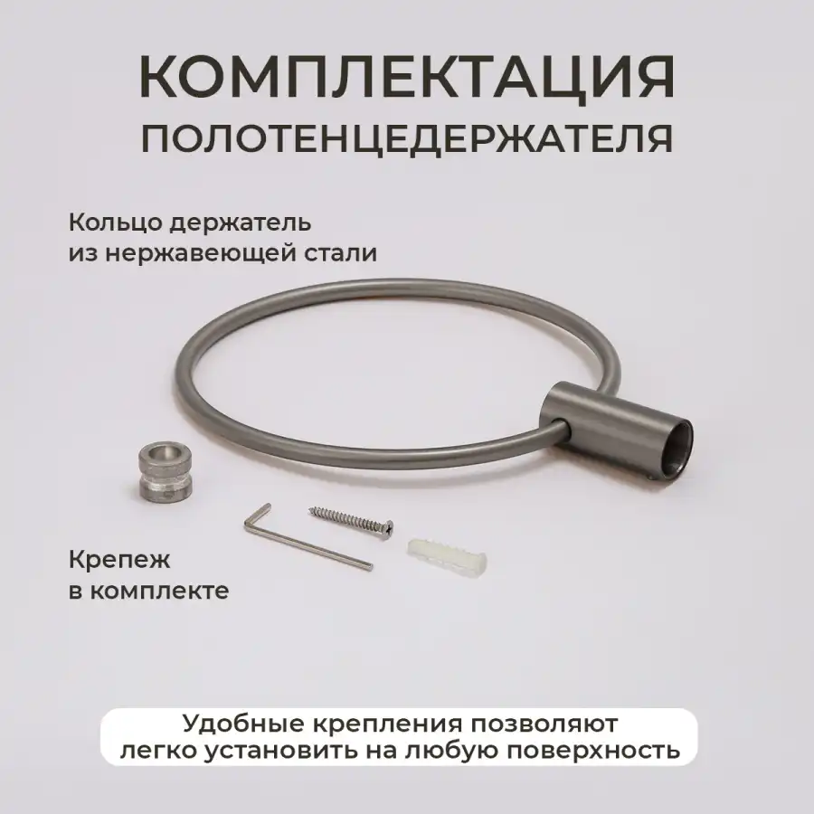 Полотенцедержатель AVS Slimmer, оружейная сталь, кольцо