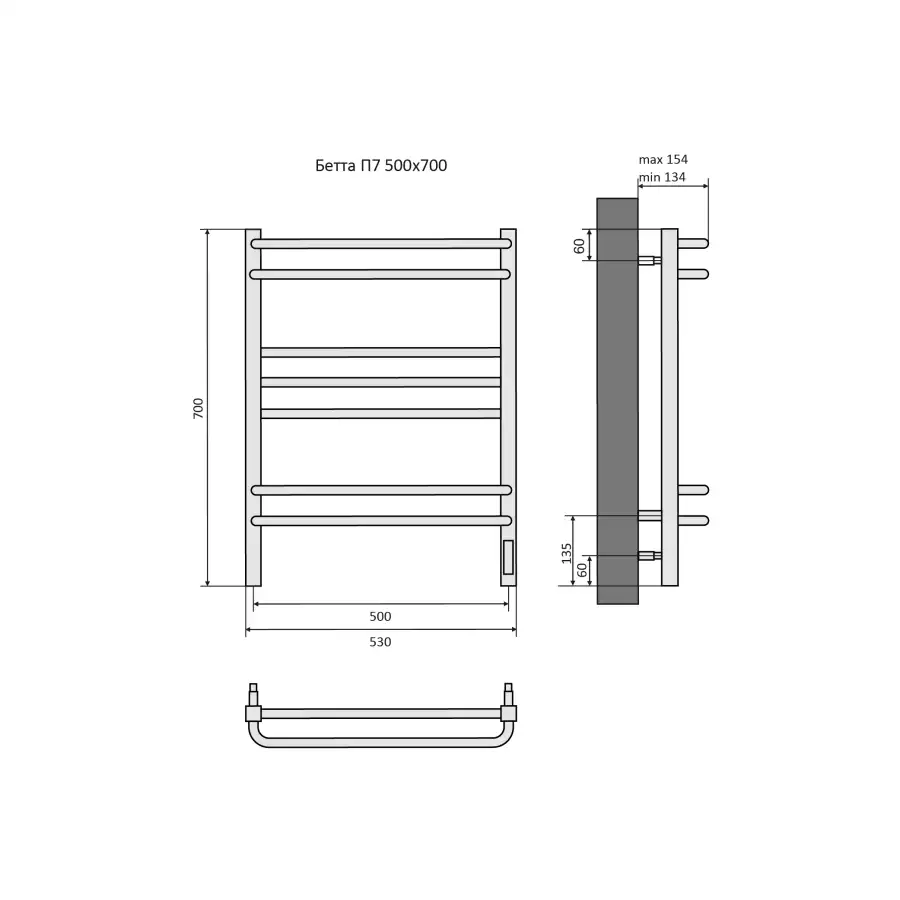 Полотенцесушитель электрический 50х70 Aquatek Бетта П7 AQ EL KRC0770CH, диммер справа, Хром , материал нержавеющая сталь