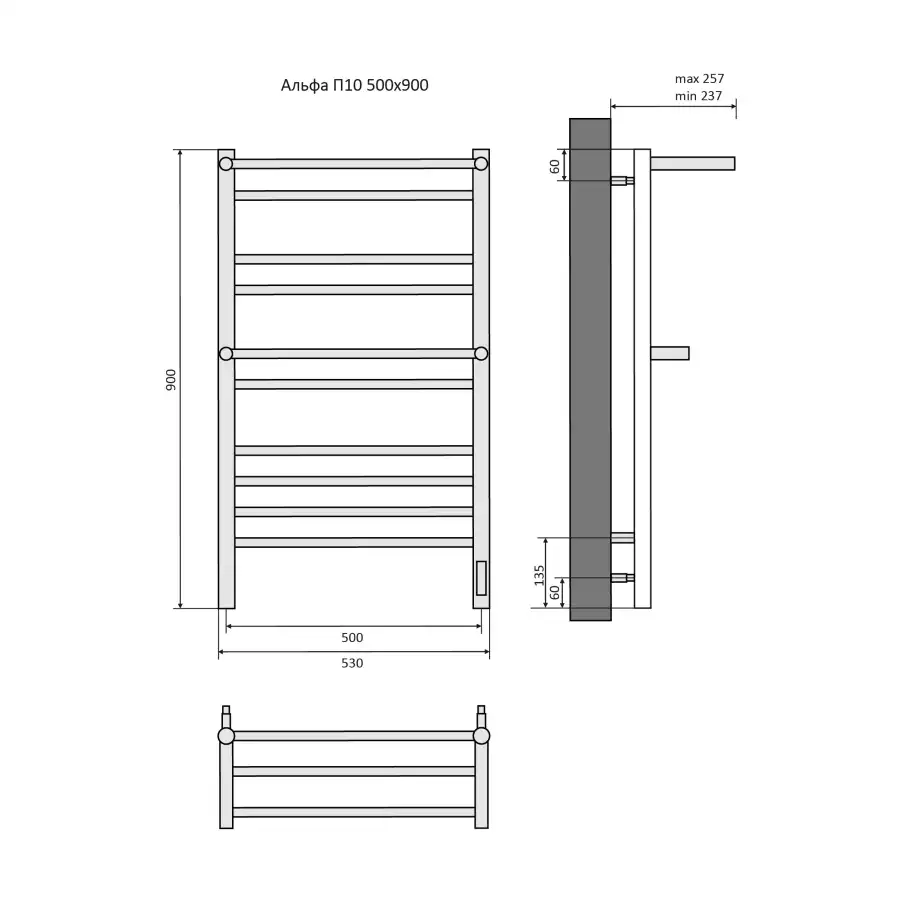Полотенцесушитель электрический 50х90 Aquatek Альфа П10 AQ EL RRP1090CH с полкой, диммер справа, Хром , материал нержавеющая сталь