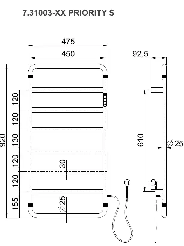 Полотенцесушитель электрический Allen Brau Priority 920х475 7.31003-GM, графит матовый, подключение скрытое к сети электропитания / электропровод с вилкой, с терморегулятором и таймером quick touch, нержавеющая сталь SUS 304, гарантия 3 года.