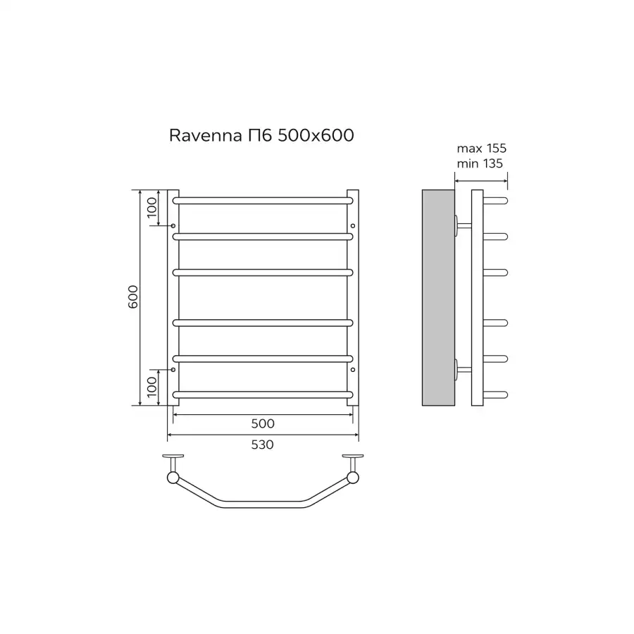 Полотенцесушитель водяной Azario Ravenna 50х60 AZ07156 П6 нижнее подключение 1/2" ВР, Хром