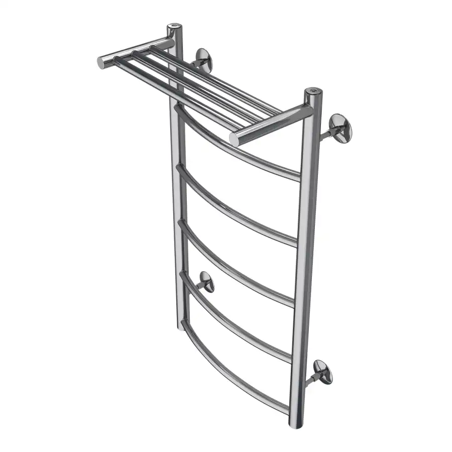 Полотенцесушитель водяной Azario VERONA AZ04148P 40х80 П5 лесенка с полкой, 5 перекладин, нижнее/диагональное подключение 1/2" ВР, материал нержавеющая сталь, Хром