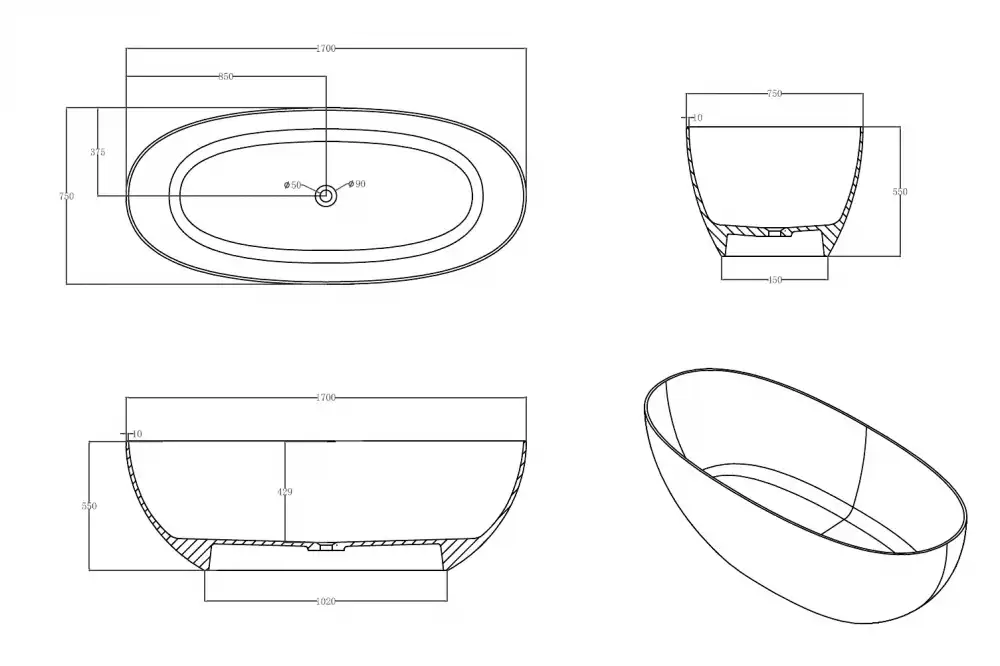 Прозрачная ванна ABBER Kristall AT9703Aquamarin 170х75 бирюзовая