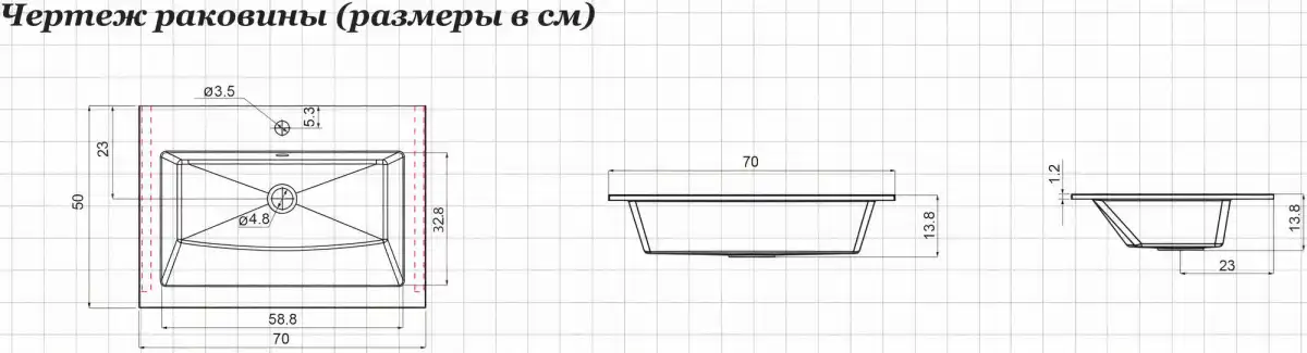 Раковина Aquanet Электра 70 НФ-00008398 прямоугольная, Белая глянцевая