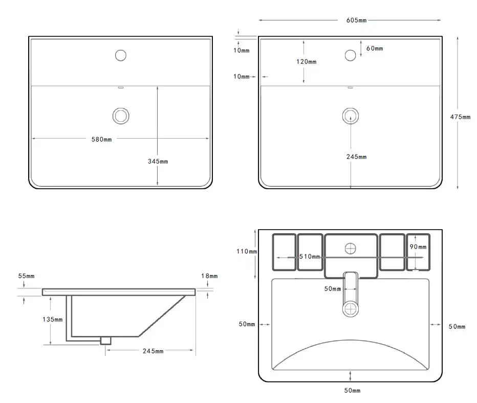 Форма раковиныПрямоугольная