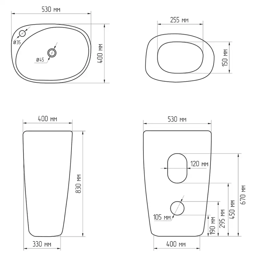 Форма раковиныОвальная