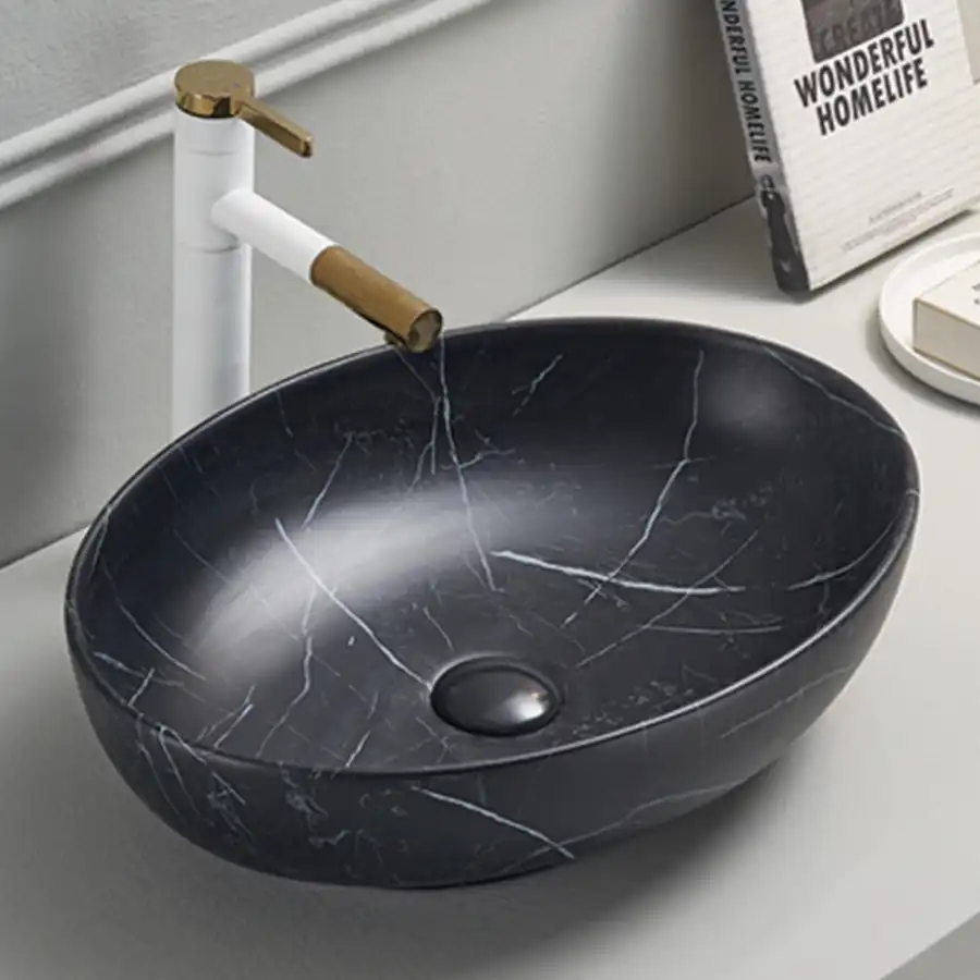Раковина AVS Карина 52x40 черный мрамор матовая, 813-0219-52M-B2.