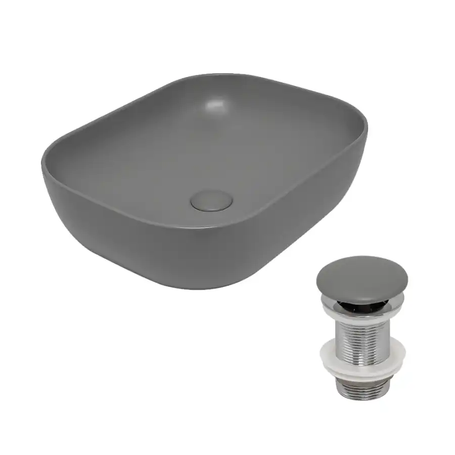 Раковина AVS Клара 51x40 серая матовая с донным клапаном, N813-0215-50MH/0101-MH.