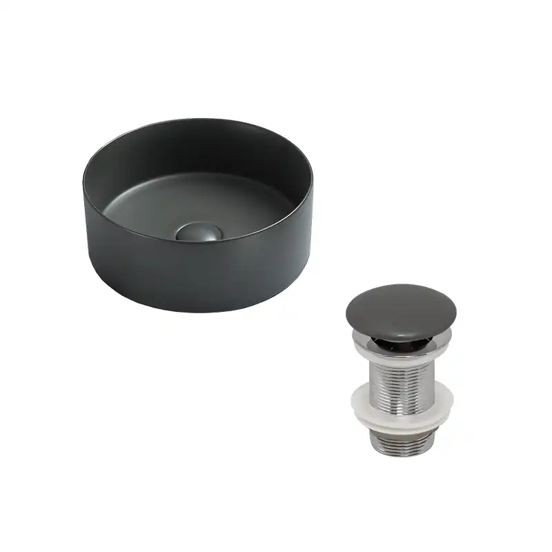 Раковина AVS Лилиан 36x36 темно-серая матовая с донным клапаном, N813-0216-d36MDH/0101-MDH.