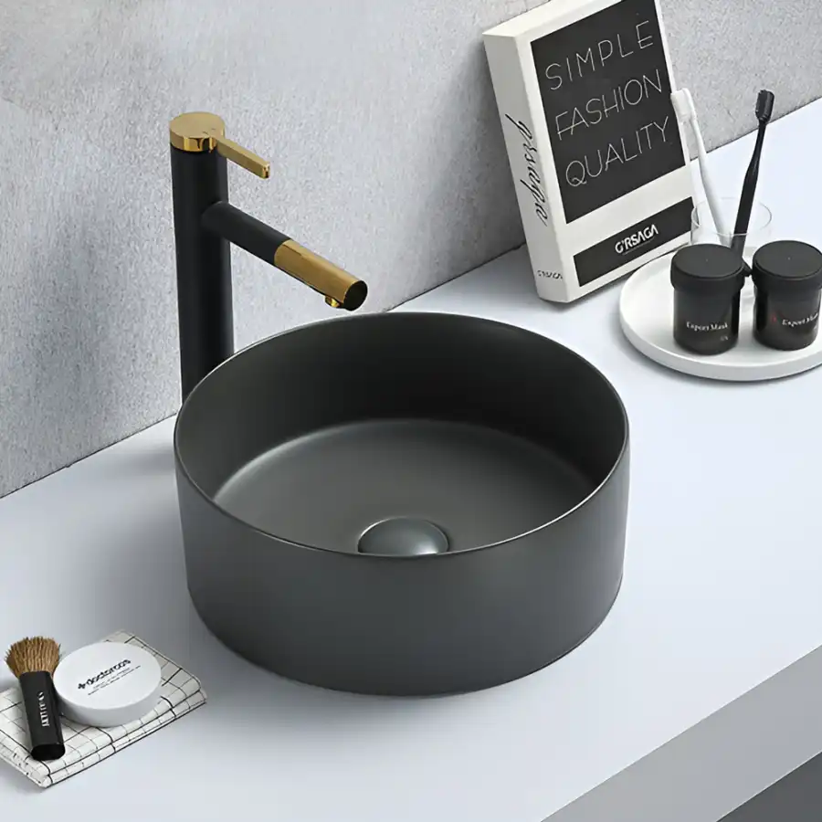 Раковина AVS Лилиан 36x36 темно-серая матовая с донным клапаном