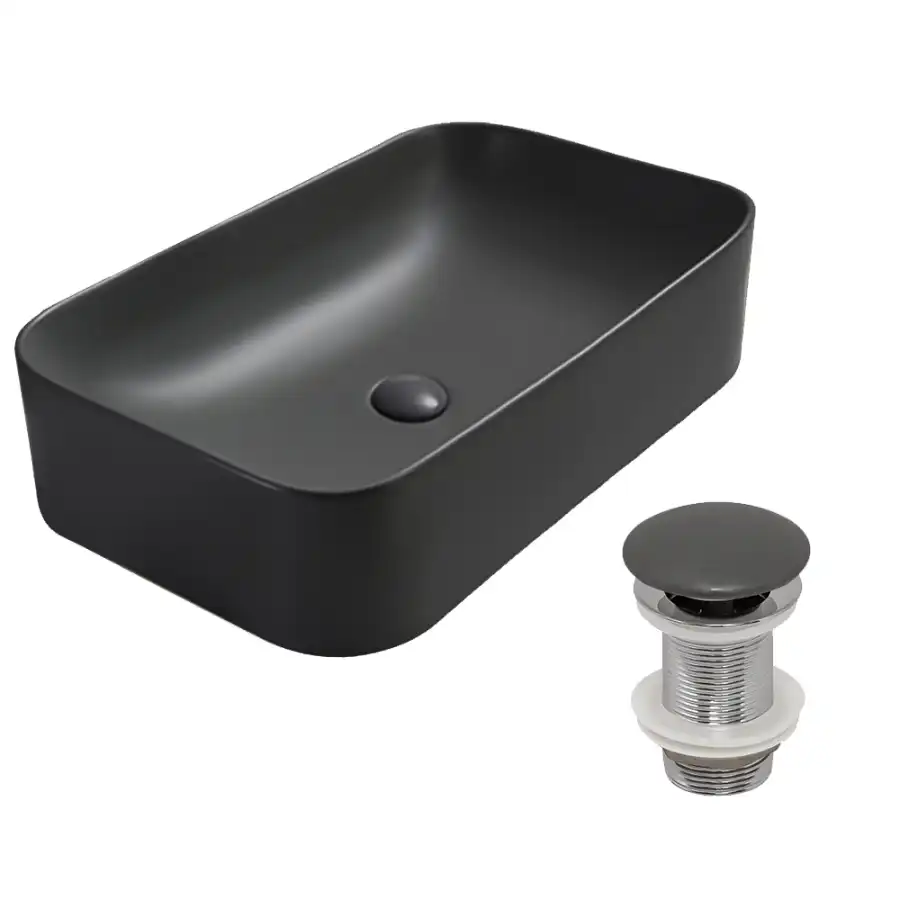 Раковина AVS Скарлет 61x31 темно-серая матовая с донным клапаном