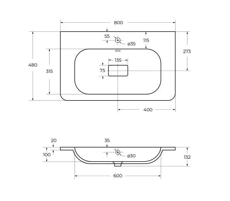 Раковина из искусственного мрамора, 800х480х132, CZR-800/480-LV-MR-NV