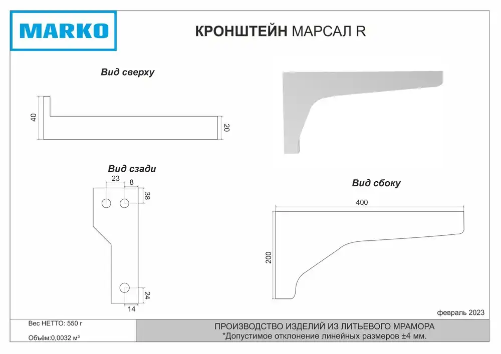 Материал раковиныЛитьевой мрамор