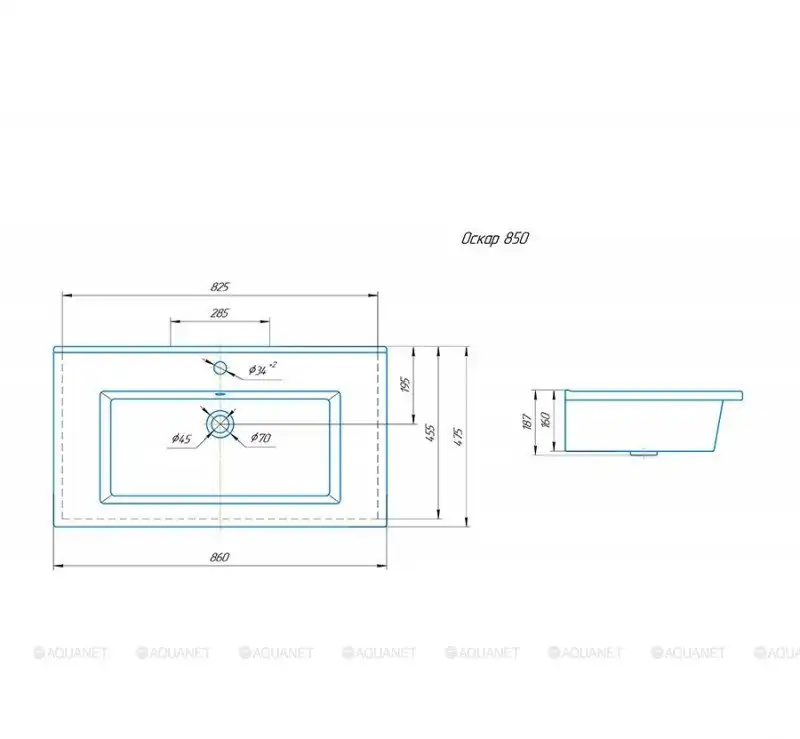 Раковина Kirovit Оскар 85 прямоугольная, Белая глянцевая