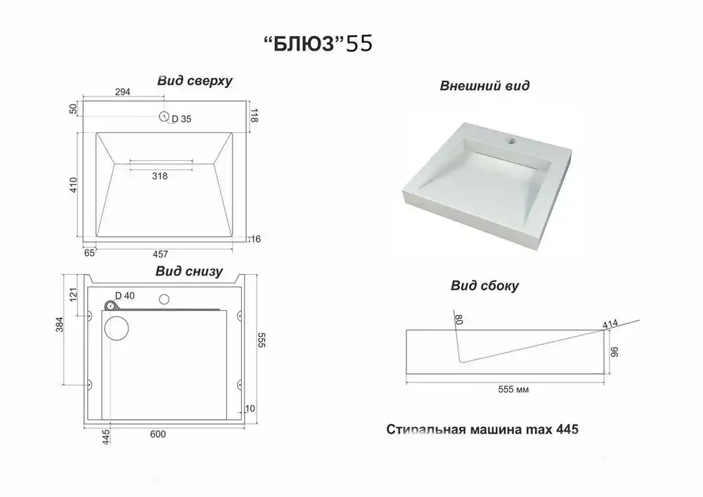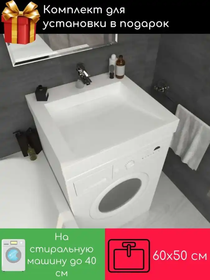 Раковина Marko Блюз 55 над стиральной машиной, из литьевого мрамора, Белая.