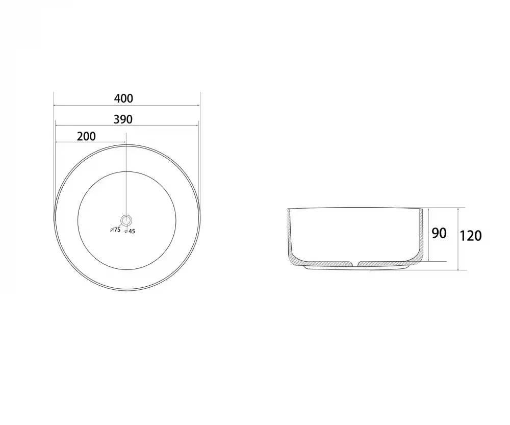 Раковина накладная круглая ABBER BEQUEM AC2109MG 40х40х12, серая матовая, материал - фаянс