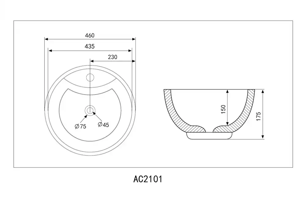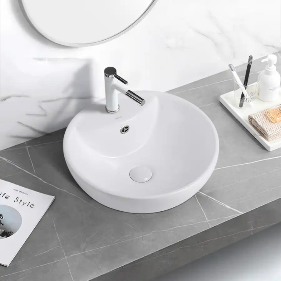 Раковина накладная круглая ABBER BEQUEM AC2101 46х46х17,5, белая, материал - керамика